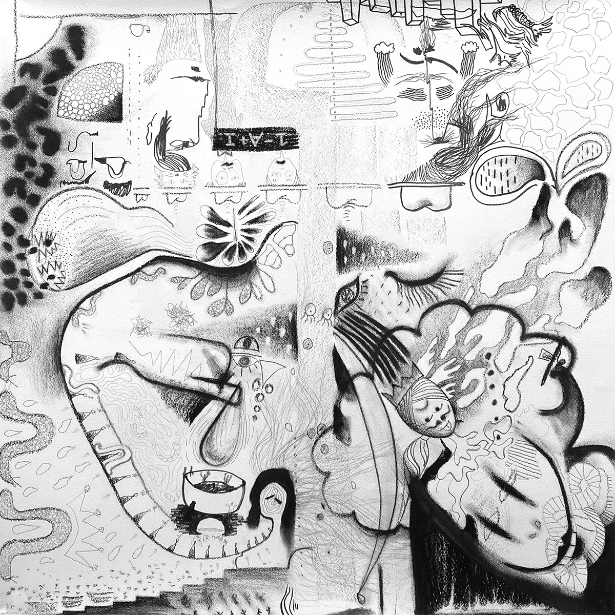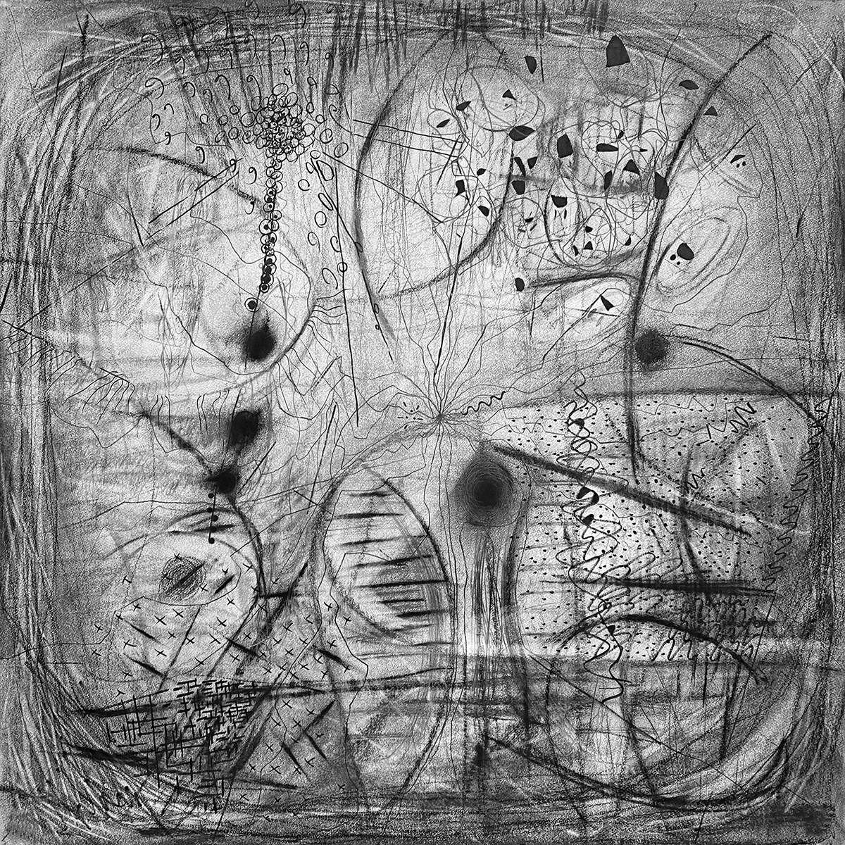 These arbitrary guidelines resemble the grammatical rules, as well as precepts - both explicit and tacit, mutually agreed on - one encounters in language or culture. While forming the backbone of social interactions, they may be reappropriated or individualised. The six ‘automatic’ drawings are processes during which the artists silently converse but also negotiate, at times resisting or adjusting to one another. A spatialisation of these exchanges, the outcomes reflect either a cacophony or quiet and intimate talk - sometimes both - as the participants upset each other’s trajectories or reciprocally complete their drawn sentences.