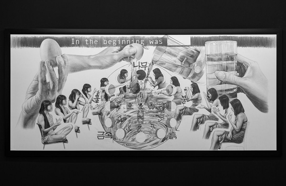 Yet, Lee’s works leave room for fortuitous conversations - they are frames to be filled in or extended. Systems may set elements in motion, allowing for an exchange to take place; cultural and linguistic principles may guide interactions but for a dialogue to occur, individuals are still required to bridge the gap between them. Surveying this aperture, as Lee does, denotes a humble and open-minded posture. It also constitutes a shift from some of the previous attempts artists and theorists have made at ‘translating’ cultures and artistic practices. Never forceful, the exhibited works seemingly hover and drift in a multilayered landscape, where the specter of colonialism looms alongside snappy social media captions, and charcoal drawings as well as time-lapses capture conversations.