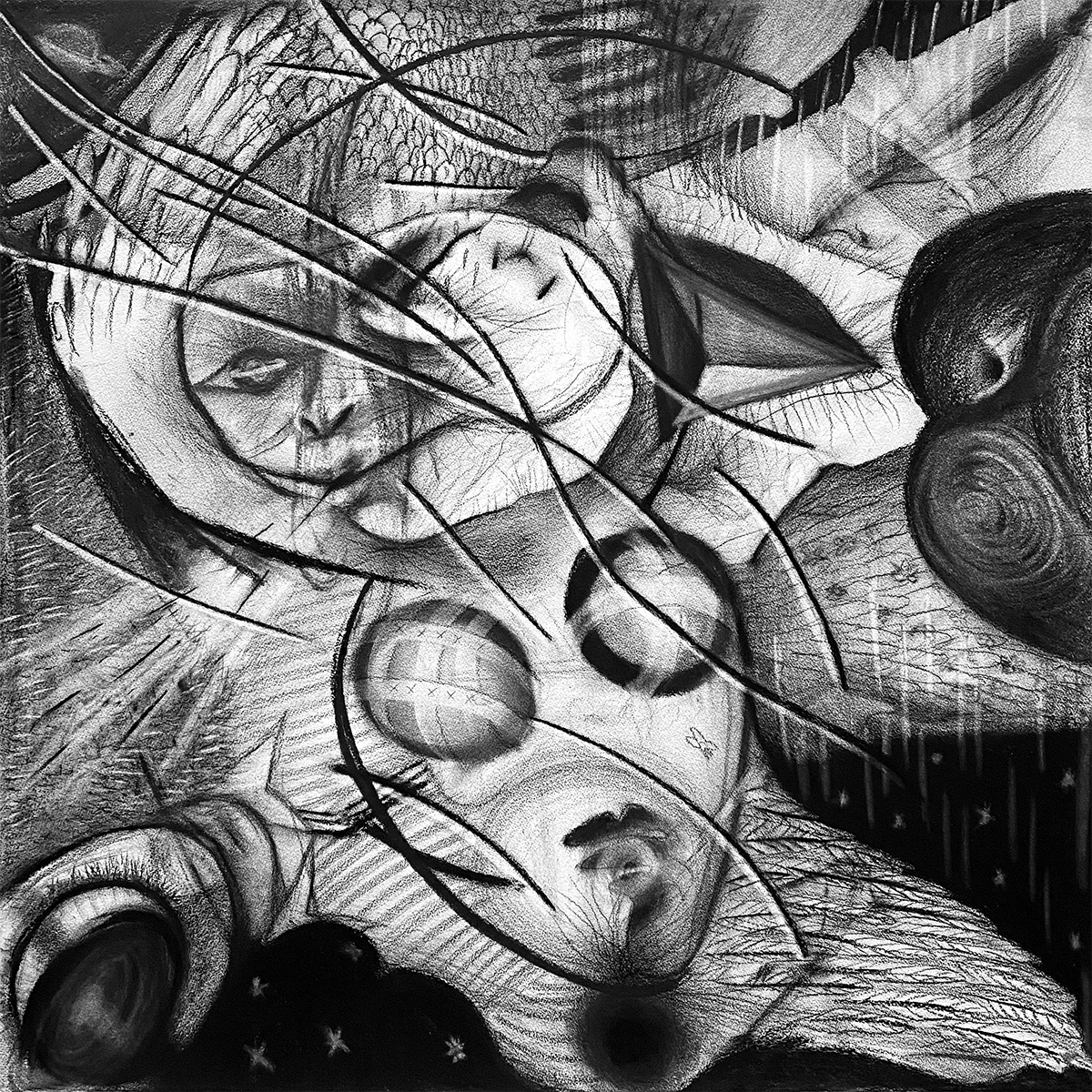 Each invited artist is handed a tray containing a set of charcoal pencils, thus restricting their use of materials and colours.